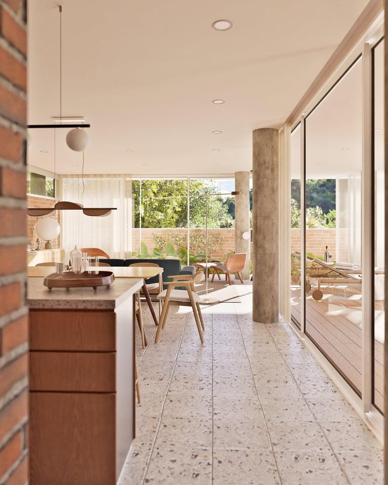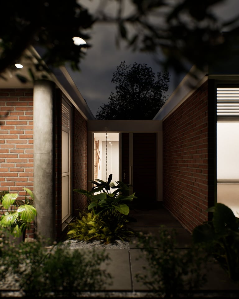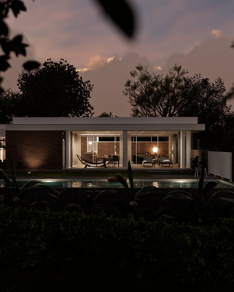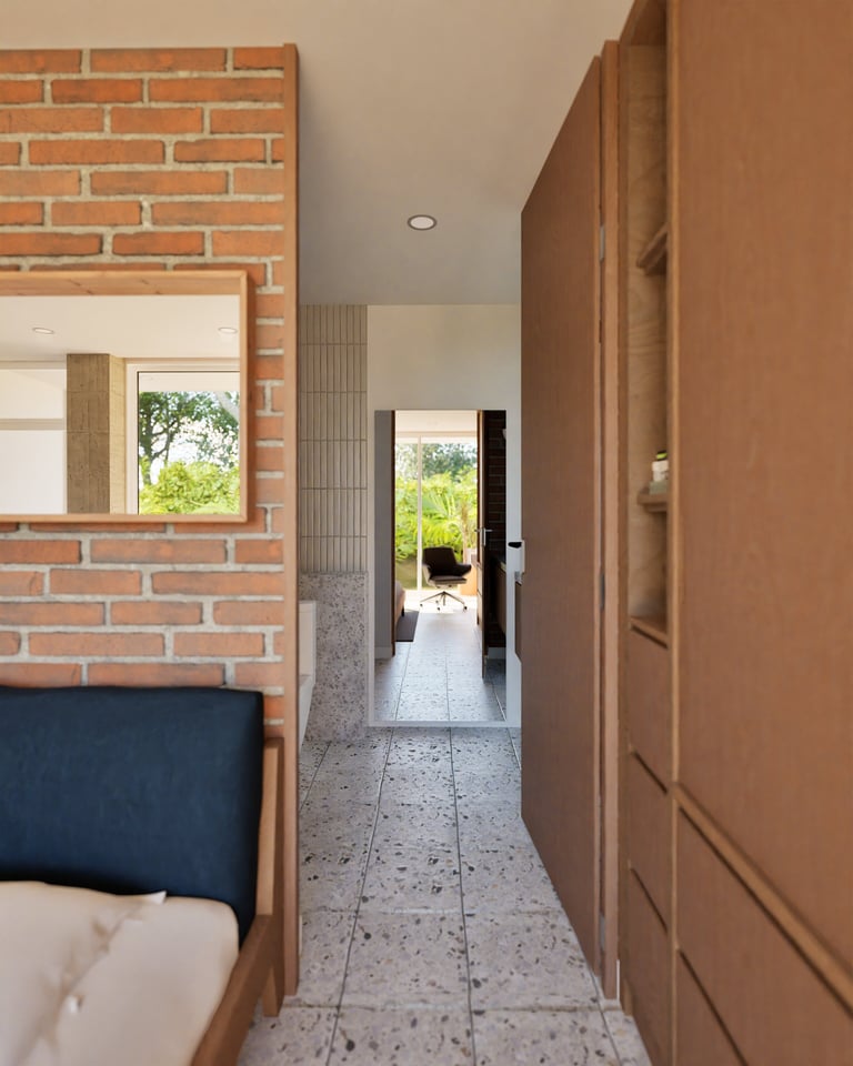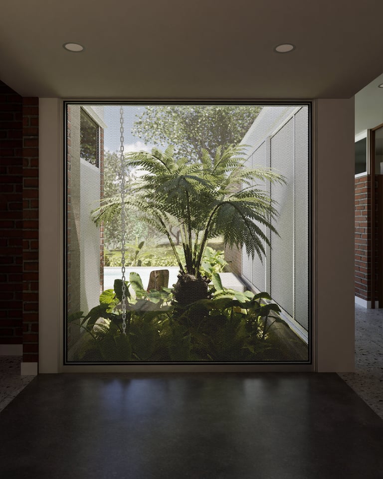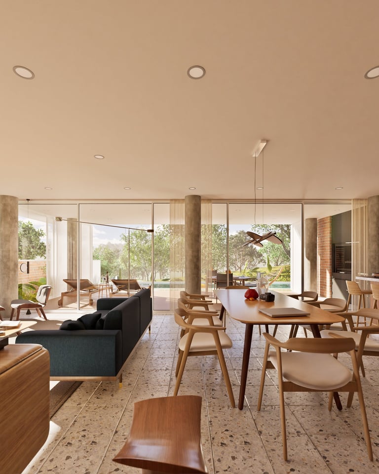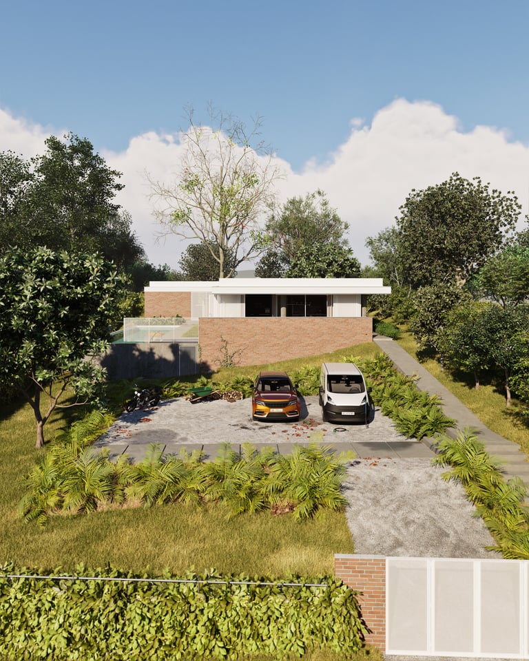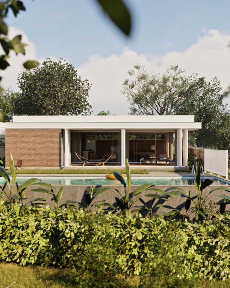 La aproximación al diseño parte de observar cómo se vive el territorio: el uso constante del exterior, la necesidad de sombra, la relación directa entre agua, brisa y descanso, y una cultura constructiva honesta y directa. El proyecto no busca gestos formales aislados, sino decisiones coherentes entre implantación, estructura, orientación y materialidad. Cada elemento —desde la posición de la piscina hasta la profundidad de los voladizos o el uso de rejas perforadas— responde a una lógica climática, funcional y familiar. La arquitectura se entiende como un sistema pasivo de control ambiental y como un soporte para la vida cotidiana, donde los materiales propios de la región se expresan sin artificios y el diseño acompaña el paso del tiempo, el crecimiento de la vegetación y las dinámicas cambiantes de la familia.